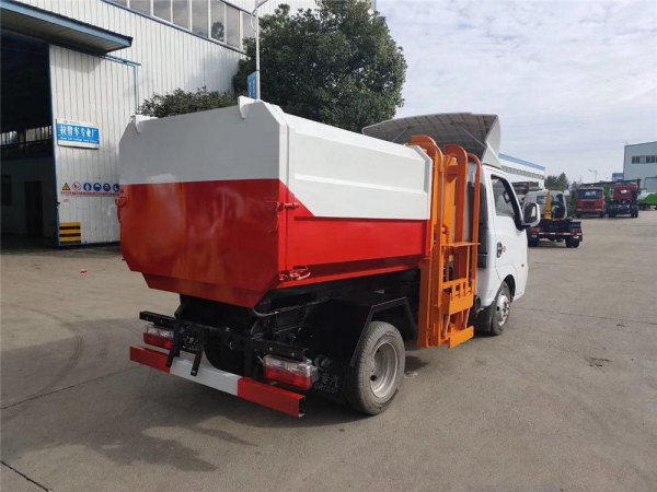 自動(dòng)舉升垃圾桶倒入垃圾,提升機(jī)頂部帶機(jī)械翻蓋,箱體底部雙液壓舉升自卸,箱體后部設(shè)有擋水槽,尾部裝有橡膠密封條,防污水滴漏。 | ||
