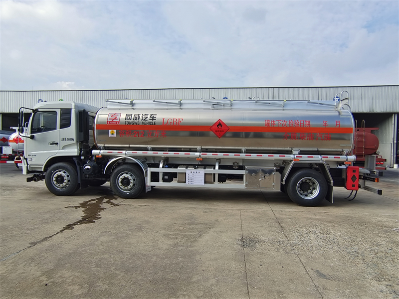 上裝配置:公告容積21.2方,帶輸油泵,可泵進(jìn)泵出,全套歐標(biāo)(兩個歐標(biāo)罐口,一個海底閥,下裝油口、廢氣回收、防溢流探桿及靜電插座),智能海底閥報,一個工具箱,折疊護(hù)欄,罐尾一個爬梯,兩個反光板,一個防火帽,兩根與罐長等長輸油管,兩個滅火器,貼3M牌反光條,反光帶,安全告示,三個“易燃液體”標(biāo)。