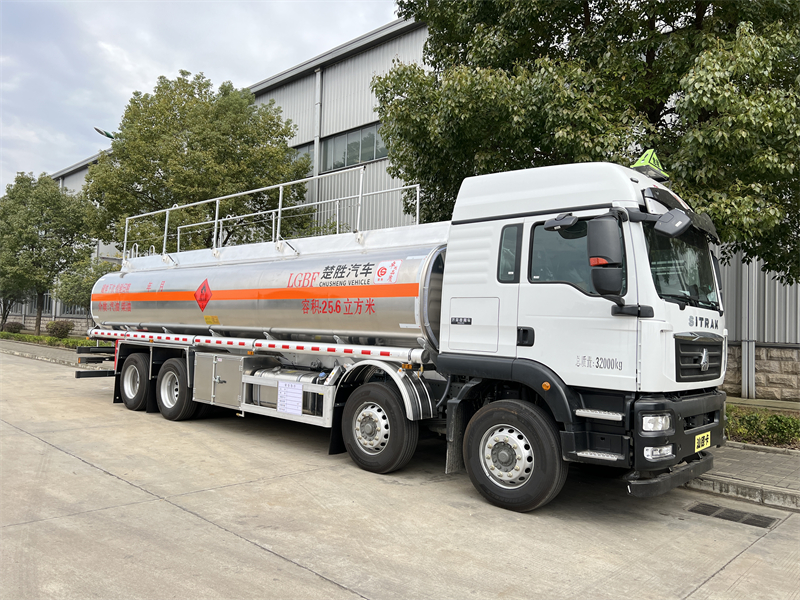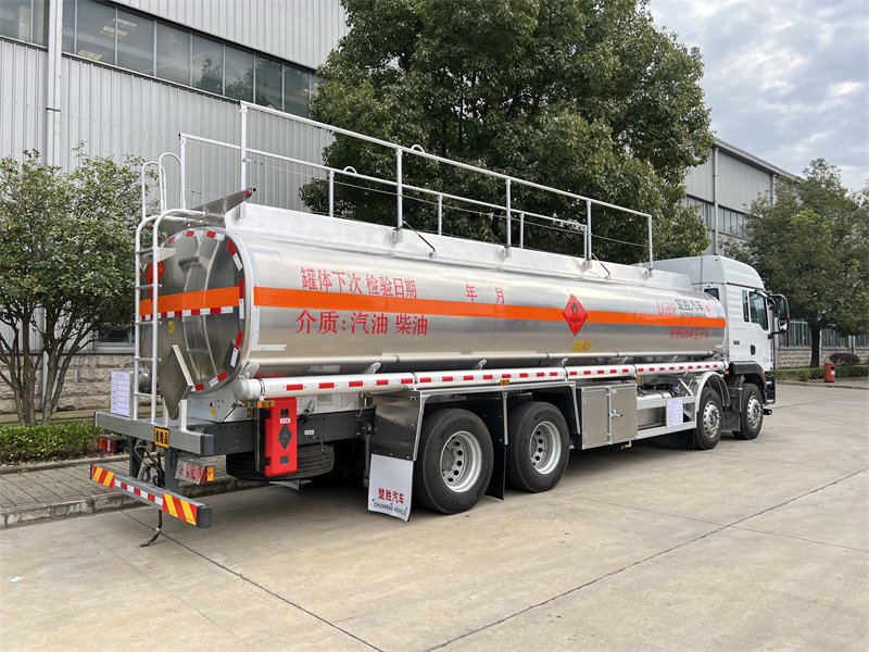 上裝配置:罐體容積按公告尺寸制作,公告容積25.6方,上戶噸位20.6.噸, 帶80-80專用油泵(帶溢流閥),(泵進泵出裝在正駕駛一側(cè),)全套歐標(兩個歐標罐口,,一個海底閥,一個防溢流探桿及插座,一個廢氣回收,一個下裝油安裝在正副駕駛一側(cè),)。配一個防火帽,兩根于罐體等長的輸油管,兩個滅火器,其余廠內(nèi)標配,罐體后尾部一個工具箱,保證罐體及整車尺寸按公告制作。油漆:不做漆,帖3M反光貼,反光帶,三個“易燃液體”標,安全告示牌。